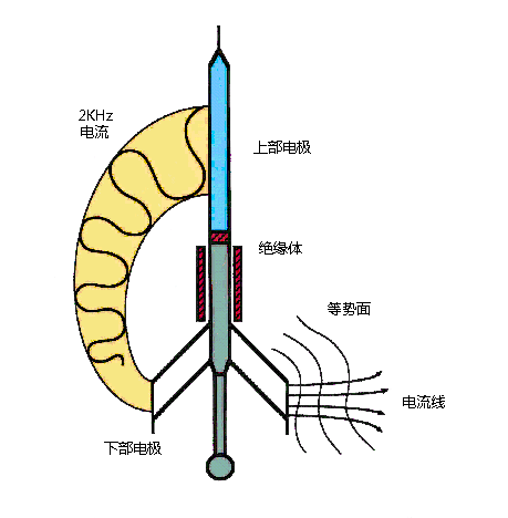 WDSC屬于一種非聚焦型電法測井儀器,電流回路為下部電極-地層-上部電極,交流電流由下部電極流入地層,回到上部電極,上部電極是電子線路的外殼。測井過程中,借助電機機械推靠系統(tǒng)使極板貼靠井壁,由地面裝置控制向地層發(fā)射電流,記錄每個鈕扣電極的電流強度及對應的測量電位差,它們反映了井壁地層的電阻率變化。